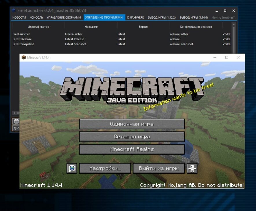 Если ты использовал другие неофициальные лаунчеры для Minecraft, то мог заметить множество рекламных баннеров с серверами. Во FreeLauncher нет ничего лишнего, поэтому он запускается мгновенно и не требует много оперативной памяти. При этом ты сможешь запускать как стабильные версии игры, так и все снапшоты. Кроме того, в лаунчер интегрирована удобная функция управления сборками.