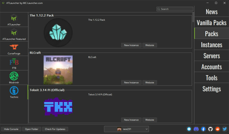 Technic Launcher разработан с целью обеспечить максимальный комфорт при игре с определёнными модами или полноценными сборками. С помощью специального меню у тебя есть возможность устанавливать их одним нажатием, не беспокоясь о совместимости версий или дополнительных библиотеках.