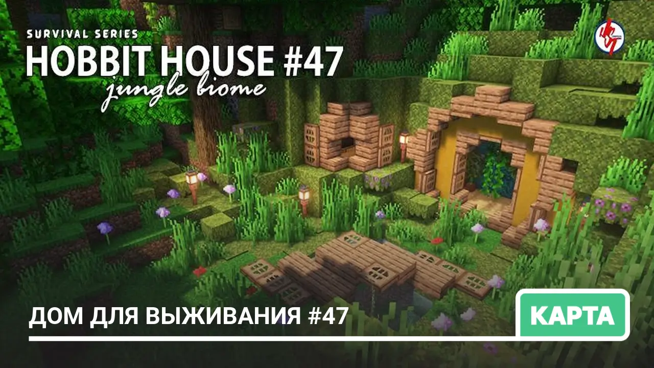 Карта Survival House #47 перенесёт вас в мир выживания с необычным домом в стиле Хоббита. Находясь в джунглевом биоме рядом с деревней, это жилище полностью укомплектовано: внутри много полезных вещей. Отлично сочетается с текстур-паками и шейдерами для создания уникальной атмосферы.