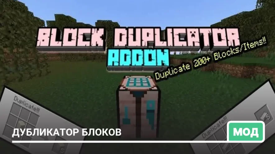 Мод Block Duplicator предоставляет возможность копировать большое количество различных блоков и предметов в Майнкрафт ПЕ, а также позволяет дублировать алмазы, железо, продукты питания и многое другое.