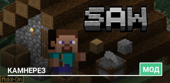 С помощью мода Saw ваш камнерез получит множество новых рецептов, что сделает его значительно более функциональным в Майнкрафт ПЕ. Кроме того, теперь камнерез может перерабатывать деревянные и каменные инструменты.