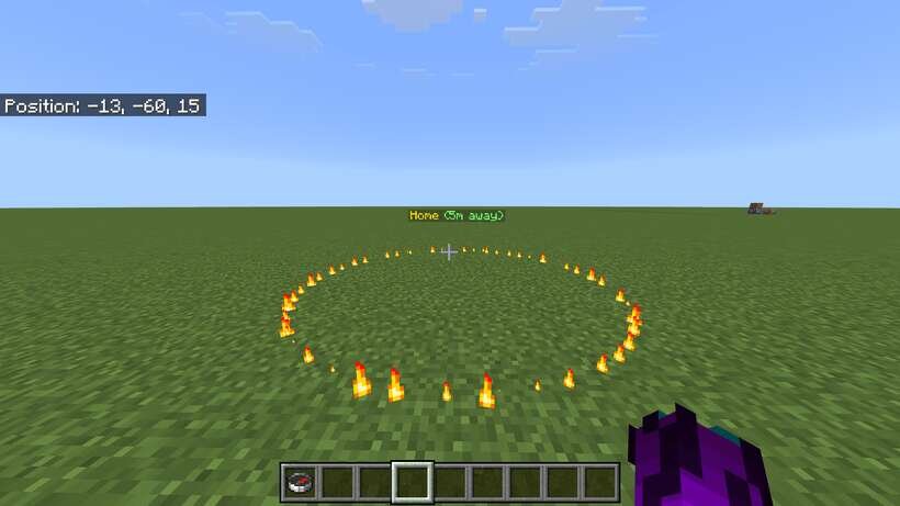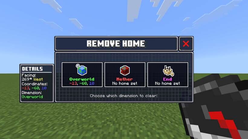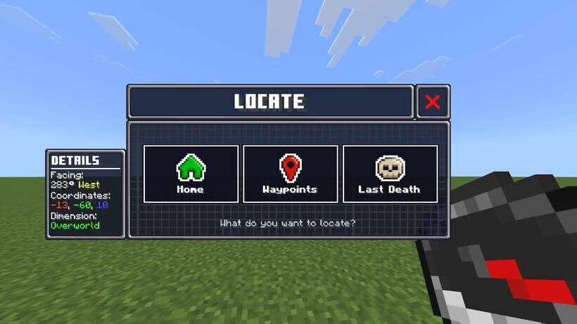 На экране отображается расстояние до цели, что позволяет ориентироваться естественным образом, без использования телепортации и читов. Система полностью совместима с режимом выживания и поддерживает все измерения: путевые точки и дома автоматически сохраняются для каждого измерения.