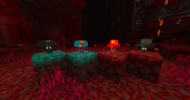 Светящийся блок, который может спауниться в Нижнем Мире. Игрок сможет скрафтить блок из блоков чернокамня и грибов искаженного леса.