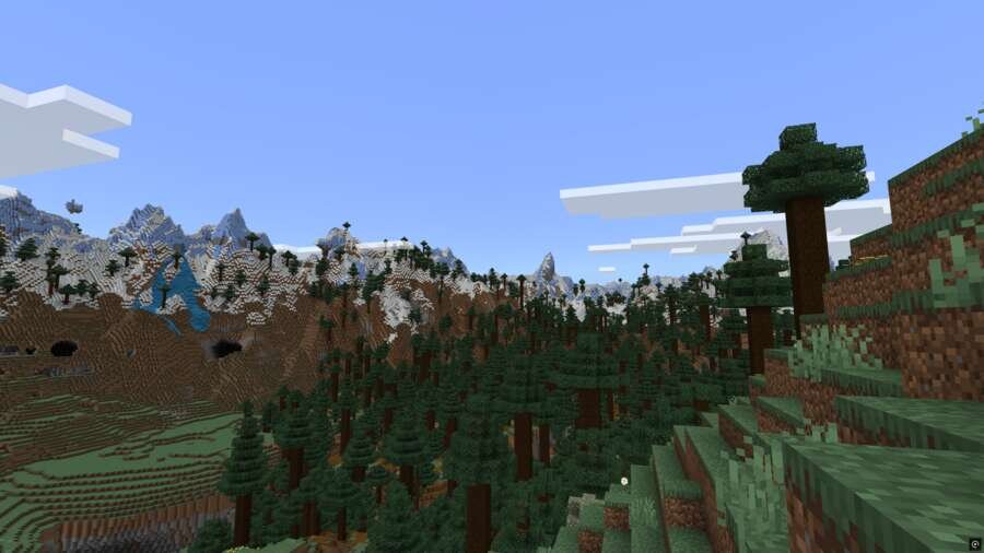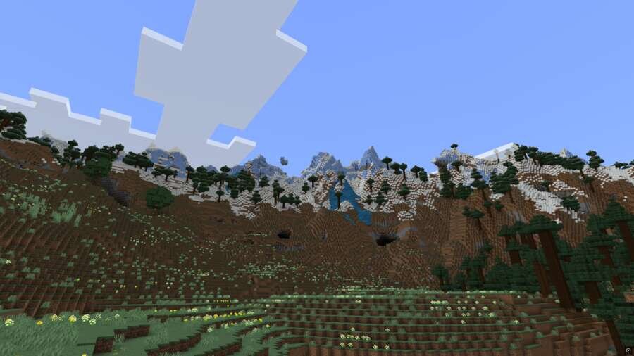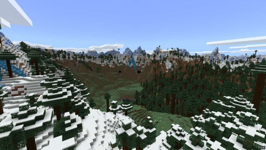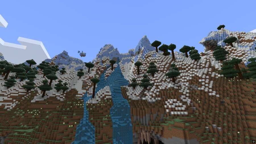 Некоторые локации игры смотрятся невероятно красиво и шикарно. В таких местах хочется построить себе лачугу и спокойно начать выживать в Майнкрафт Покет Эдишн.Игроки попадут к высокой горной гряде со снежными вершинами.