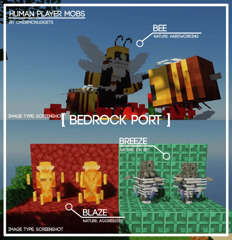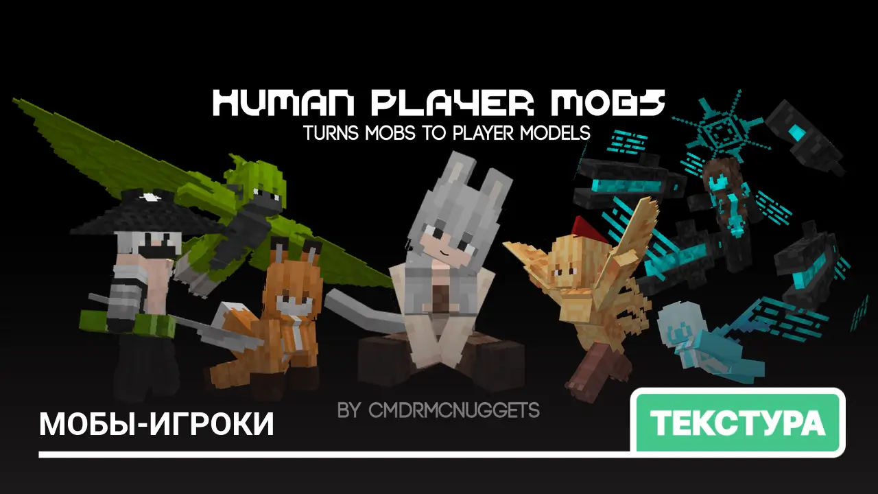 Human Player Mobs радикально изменяет привычные существа Minecraft, преобразуя их в персонажей с человеческими чертами. Вместо обычных моделей мобов теперь вы будете видеть вариации с человеческими характеристиками, что придаёт игре уникальную атмосферу.