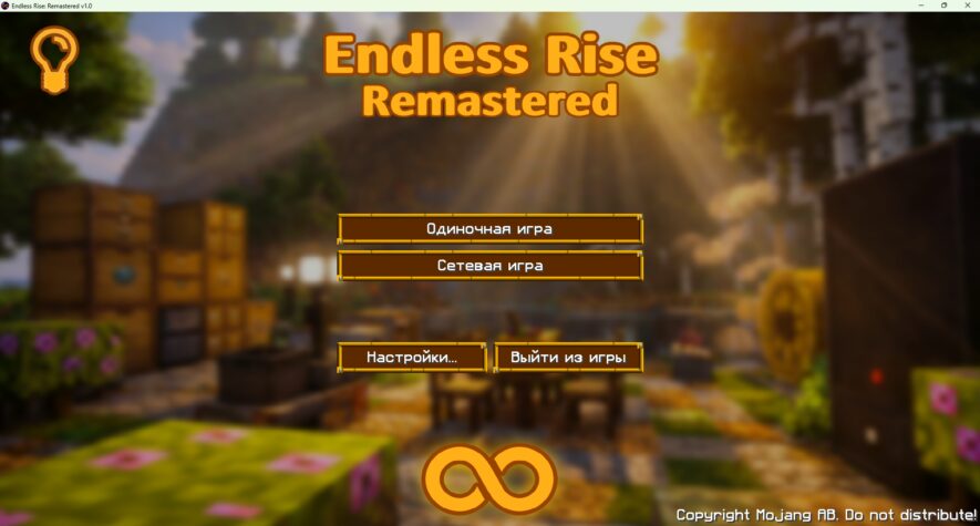 - Новые текстуры, меню и музыка: Мы разработали собственный ресурспак Endless Rise Textures, который изменяет стандартные текстуры игры в соответствии со стилем сборки, а также включает целых 9 уникальных треков для игры. Кроме того, мы обновили главное меню игры!