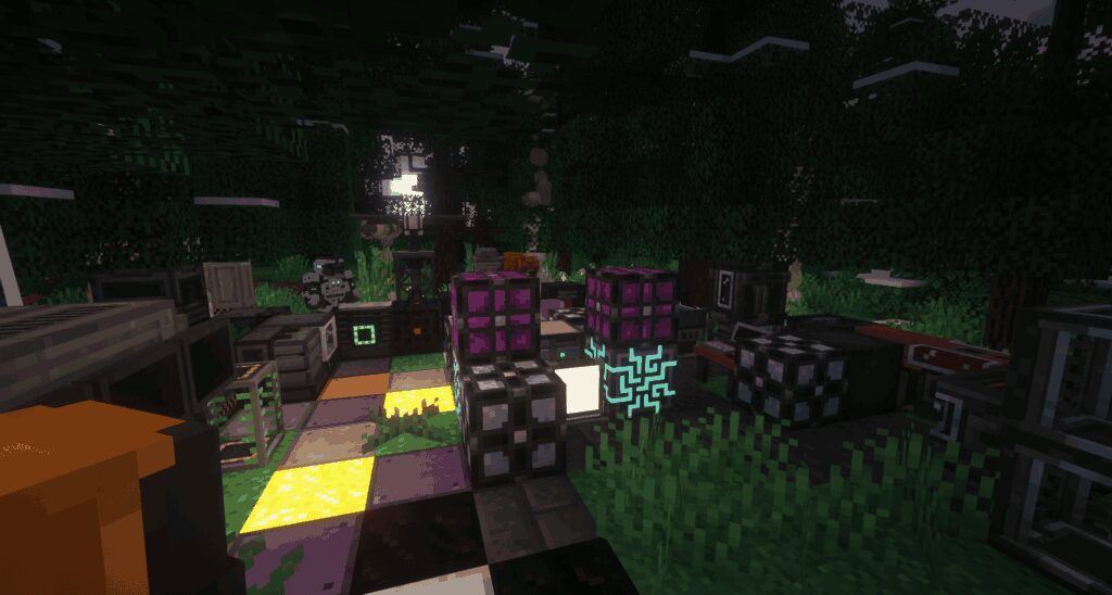 - Стадии развития: Сборка разделена на 18 этапов игры, каждый из которых открывает всё больше новых предметов, блоков и даже измерений!
