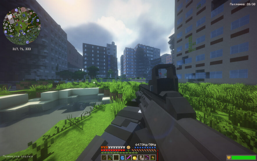 Именно так и происходит в сборке, где моральные призраки не оставляют игрока ни днем, ни ночью, будь то в процессе рубки дерева или восстановлении своей обустроенной базы. Сможете ли вы не только выжить, но и занять верхнюю ступень пищевой цепи среди опасных аномалий, Хиробрина и его последователей, различных существ из других миров и паразитических форм жизни — это зависит исключительно от вас.