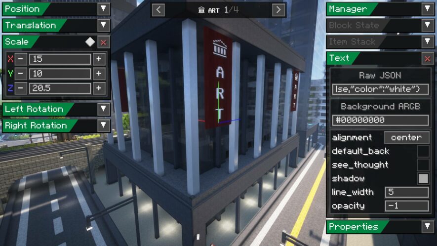 Display Edit предоставляет полный творческий контроль над display-сущностями — прямо в игровом процессе. Настраивайте их трансформации и визуальные характеристики с высокой степенью точности, чтобы создавать великолепные декорации, не используя команды или внешние инструменты.