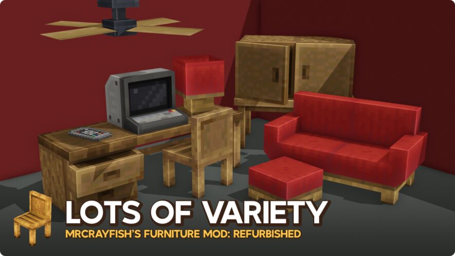 Обновлённая версия MrCrayfish’s Furniture от его оригинального создателя. Данная модификация была разработана с нуля, включая совершенно новые блоки, модели, звуки и игровые механики. Ощутите знакомое очарование оригинального мода и украсьте свой дом сотнями новых уникальных декоративных и функциональных блоков.