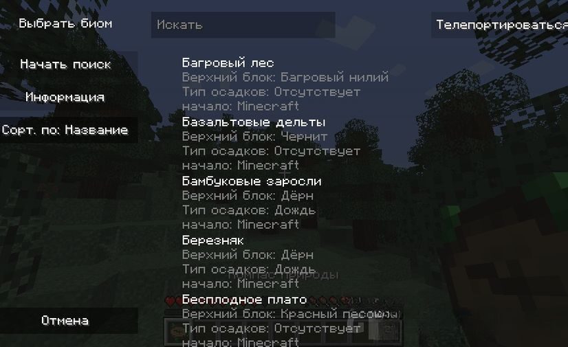 - При нажатии правой кнопки мыши, держась за компас, можно открыть его графический интерфейс. В нем можно выбрать биом, который необходимо найти.