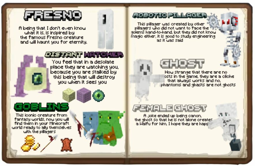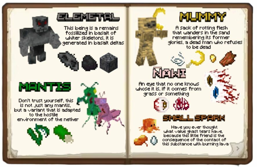 Этот мод вводит в Майнкрафт множество новых мобов, чтобы сделать игровой мир более насыщенным. Каждый моб будет отличаться своим внешним видом, поведением и добычей. Например, мумии будут давать новый инструмент — косу, а гоблины могут оставить после себя горсть золотых монет и новое оружие.